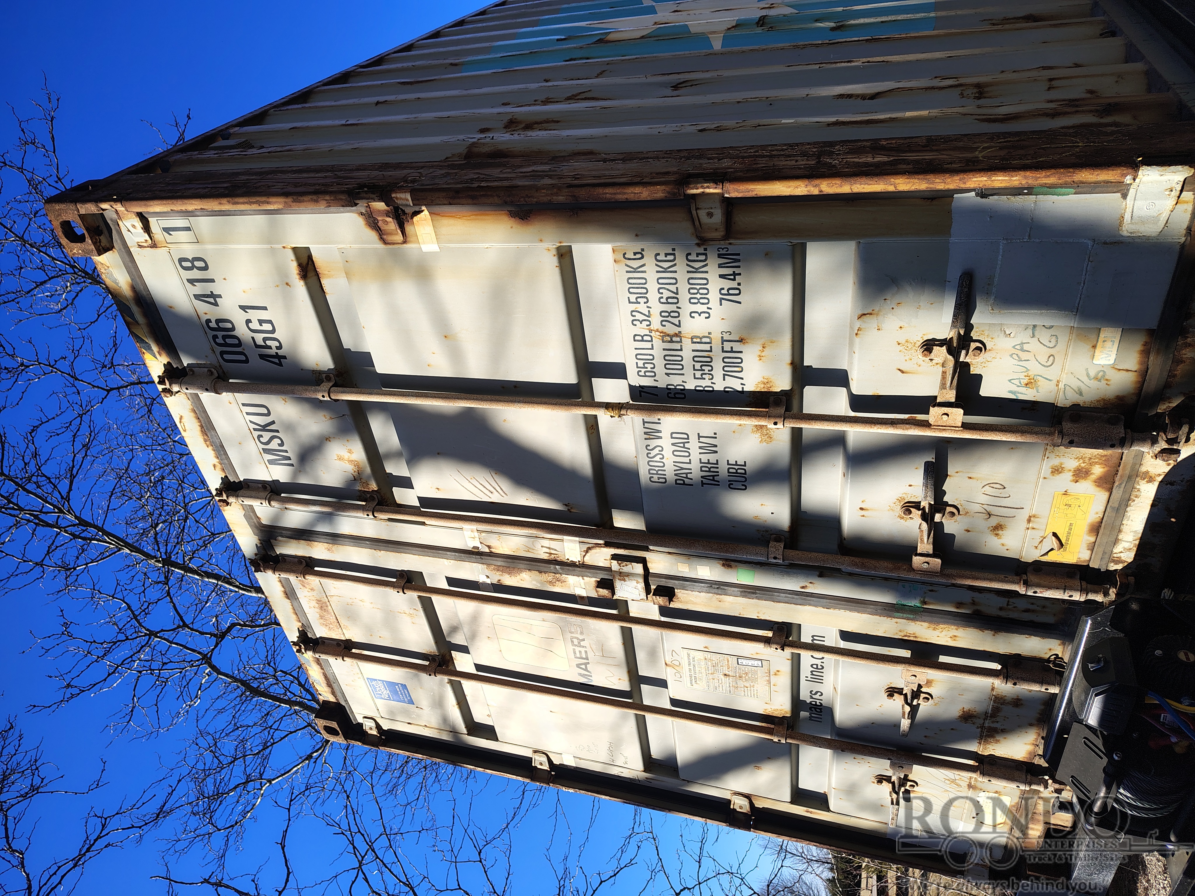 Off Site (E). Call first - this container is currently off site at a nearby storage lot. Type: High Cube. Notes: . Grade code: Wind and Water Tight. More about the Grade condition: A wind and water-tight (WWT) container is where no wind or water can penetrate through the roof, walls, or doors. These containers are suitable for local storage. They may show signs of wear (extensive markings, corrosion, scratches, and/or major rust), usually have some damage (could be repaired or non-repaired), but they are generally structurally sound. Older than 10-15 years. ---- SOLD AS IS, NO WARRANTY. All sales are final, no returns or refunds.