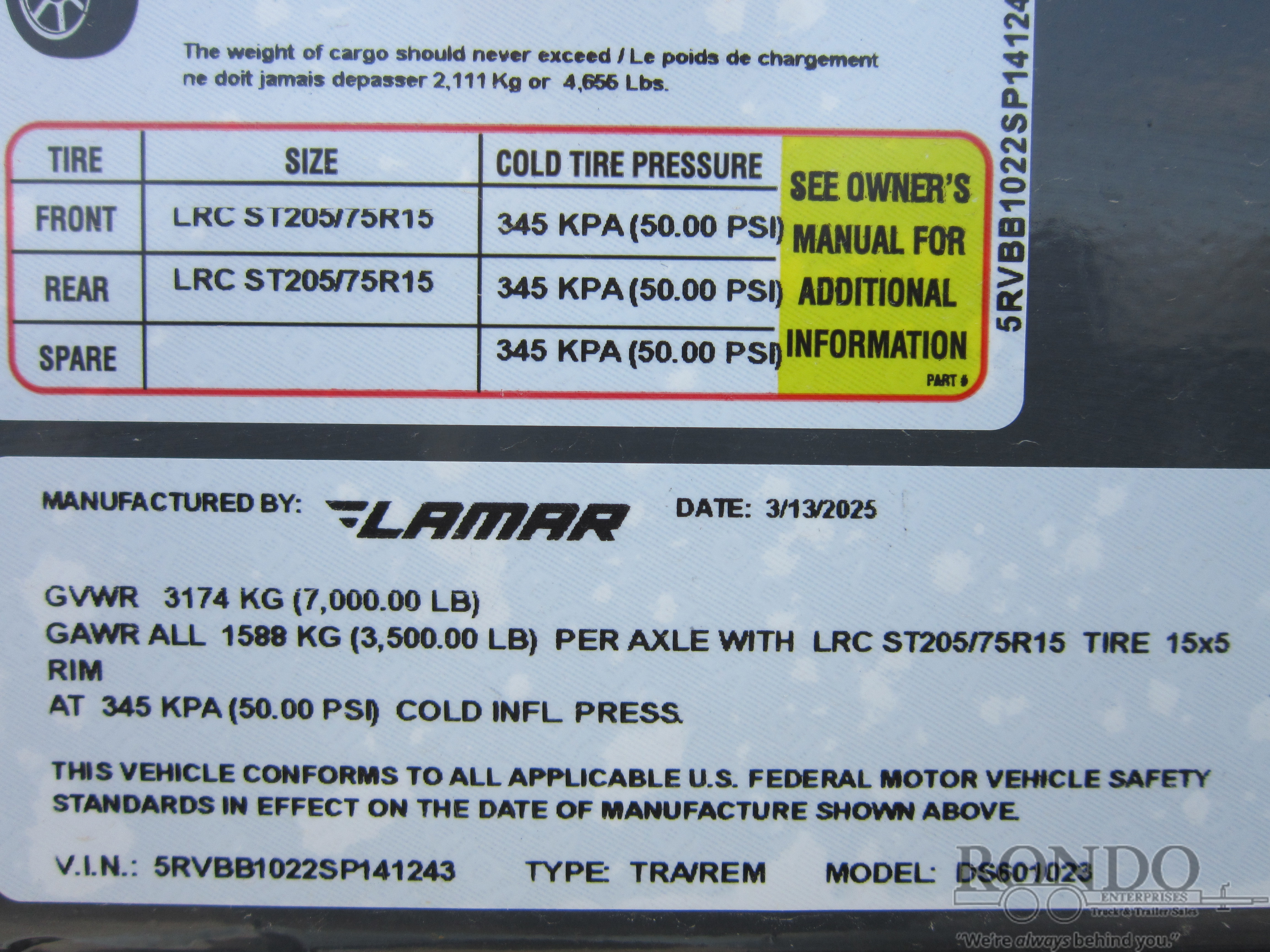 - Axle Capacity: 3500 LBS
