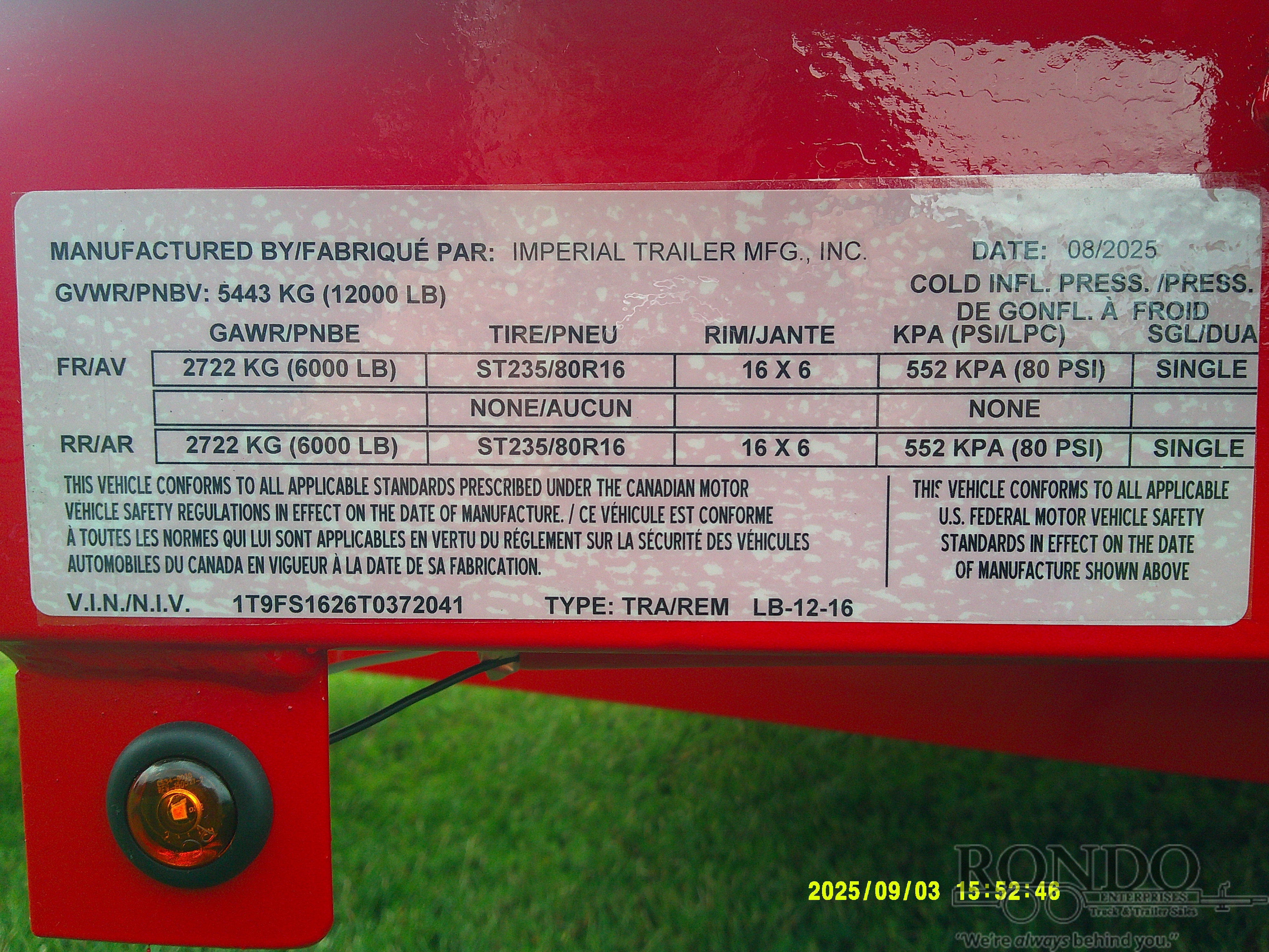 - Axle Capacity: 6000 LBS