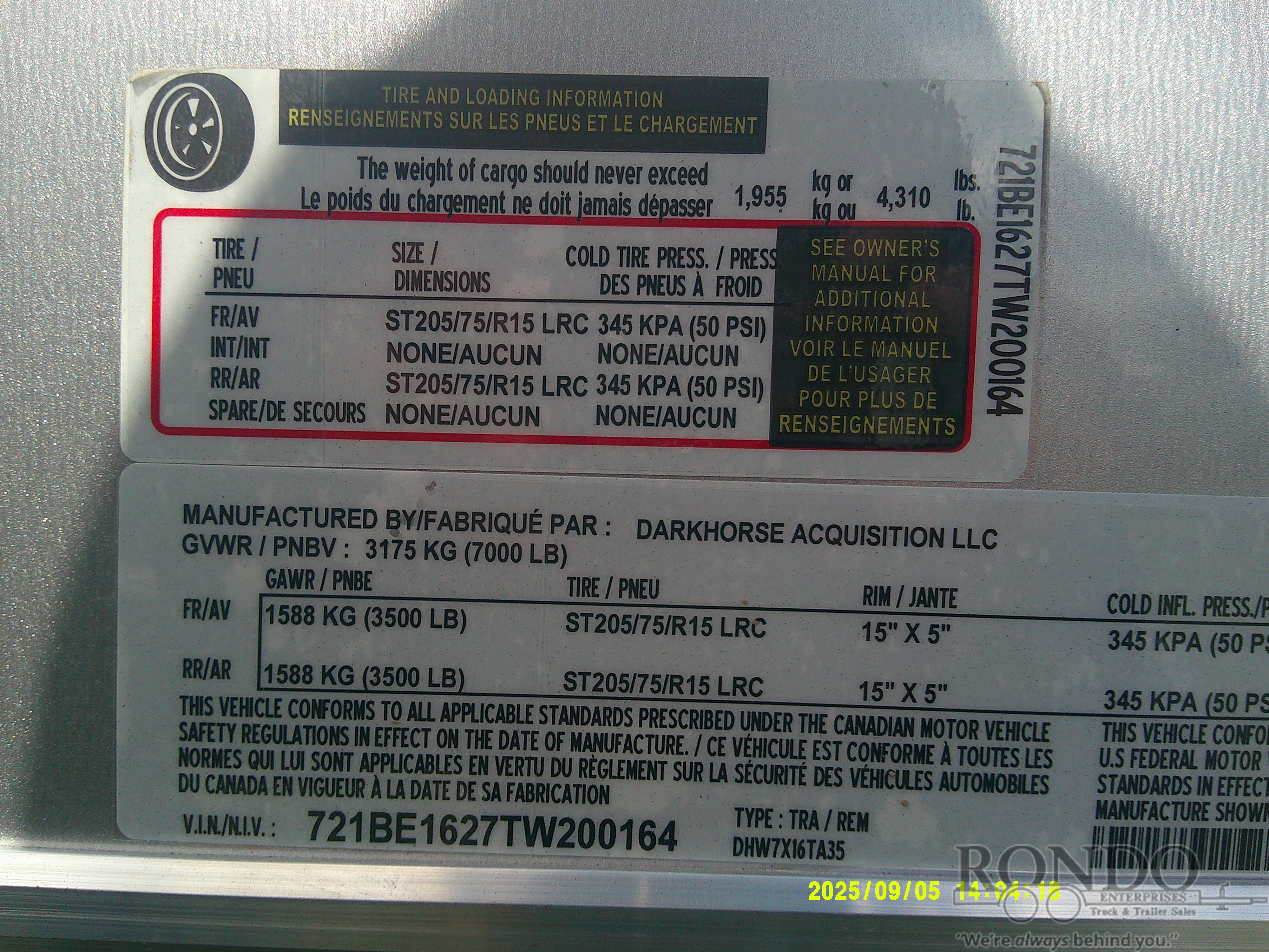 - Tire: ST205/75R15