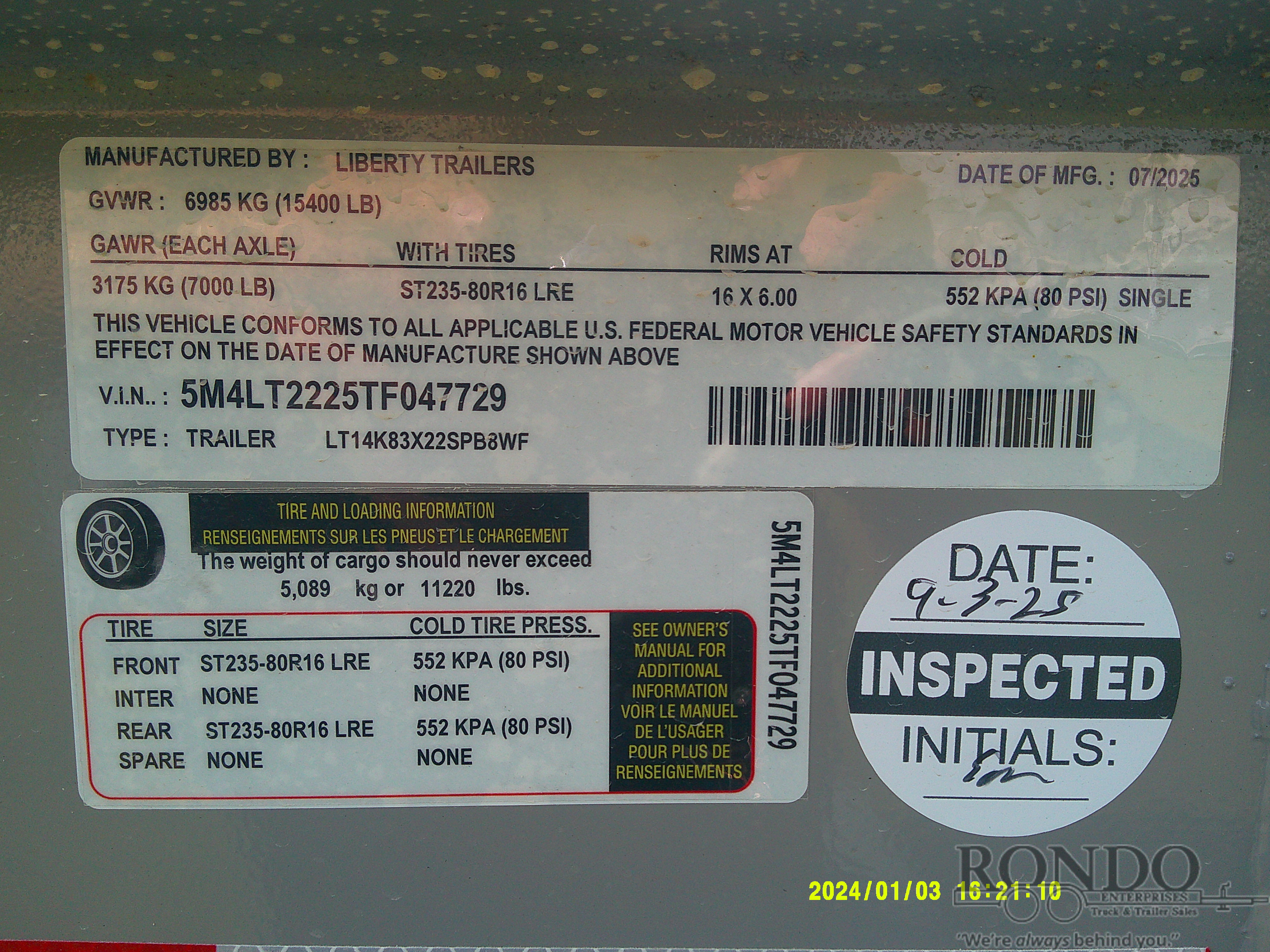 • Tire: ST235/80R16