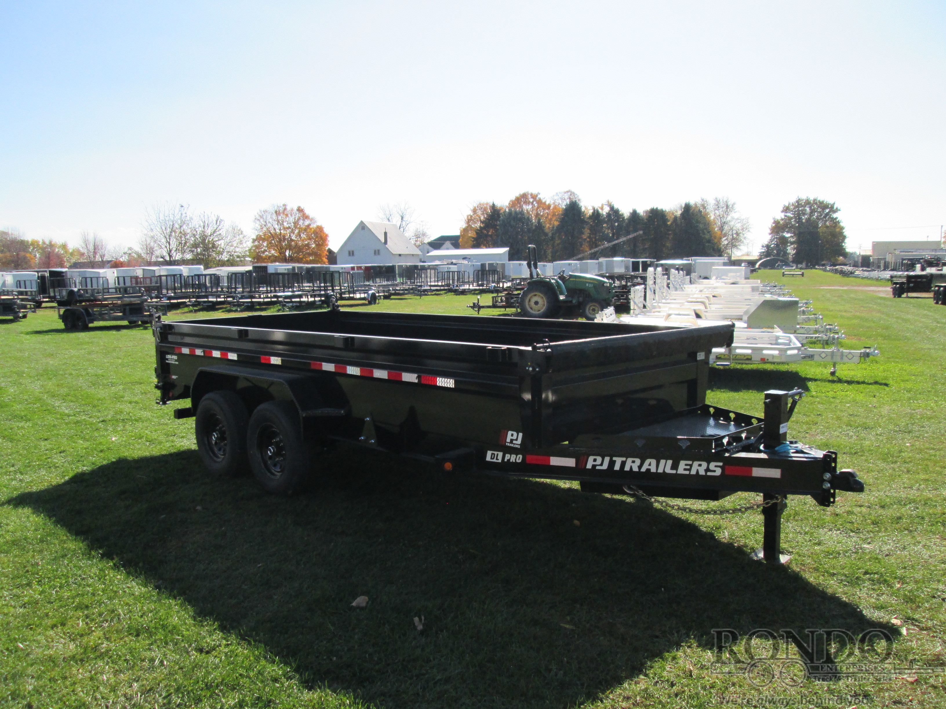 Updated DL model -2' Sides, Low Profile, Split/spreader gate, Ramps w new style built-in doors, Scissor Hoist w 3-way pump (power up/power down/gravity down), 7ga Floor, Tarp kit, Rear support stands, New massive Monster toolbox, 10k Jack, Spare mount, Adjustable Coupler or pintle ring, LEDs, 2 Lippert Straight axles with electric brakes, 8.2 Cubic yard capacity. Primer + powder coat Color: Black. Estimated shipping weight as stated by Mfg: 4250#. *Spare tire is NOT included. Sold separately.