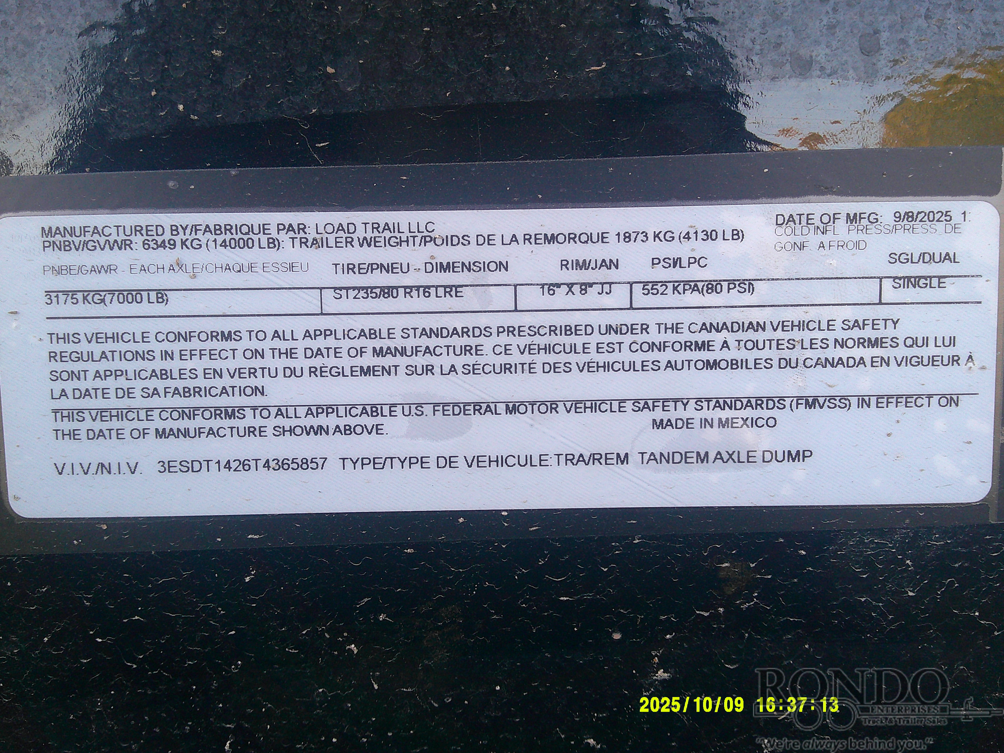 18 inch Sides, 2-way Split/spreader gate, Scissor Hoist w 3-way pump (gravity down), Ramps (80x16), Tarp kit w shield, Large divided Toolbox, 10 ga Floor, Adjustable Coupler or pintle ring, 10k Jack, 6 D-Rings, Spare mount, 16 inch Radial LRE tires, 8 inch 13# I-beam tongue & frame, LEDs w Cold weather wiring harness, 2 Dexter spring axles with electric brakes, 5.38 Cubic yard capacity. Color: Black (w/ primer). Estimated shipping weight as stated by Mfg: 4130#. *Spare tire is NOT included. Sold separately.Last Updated: 2025-11-15 20:02:00