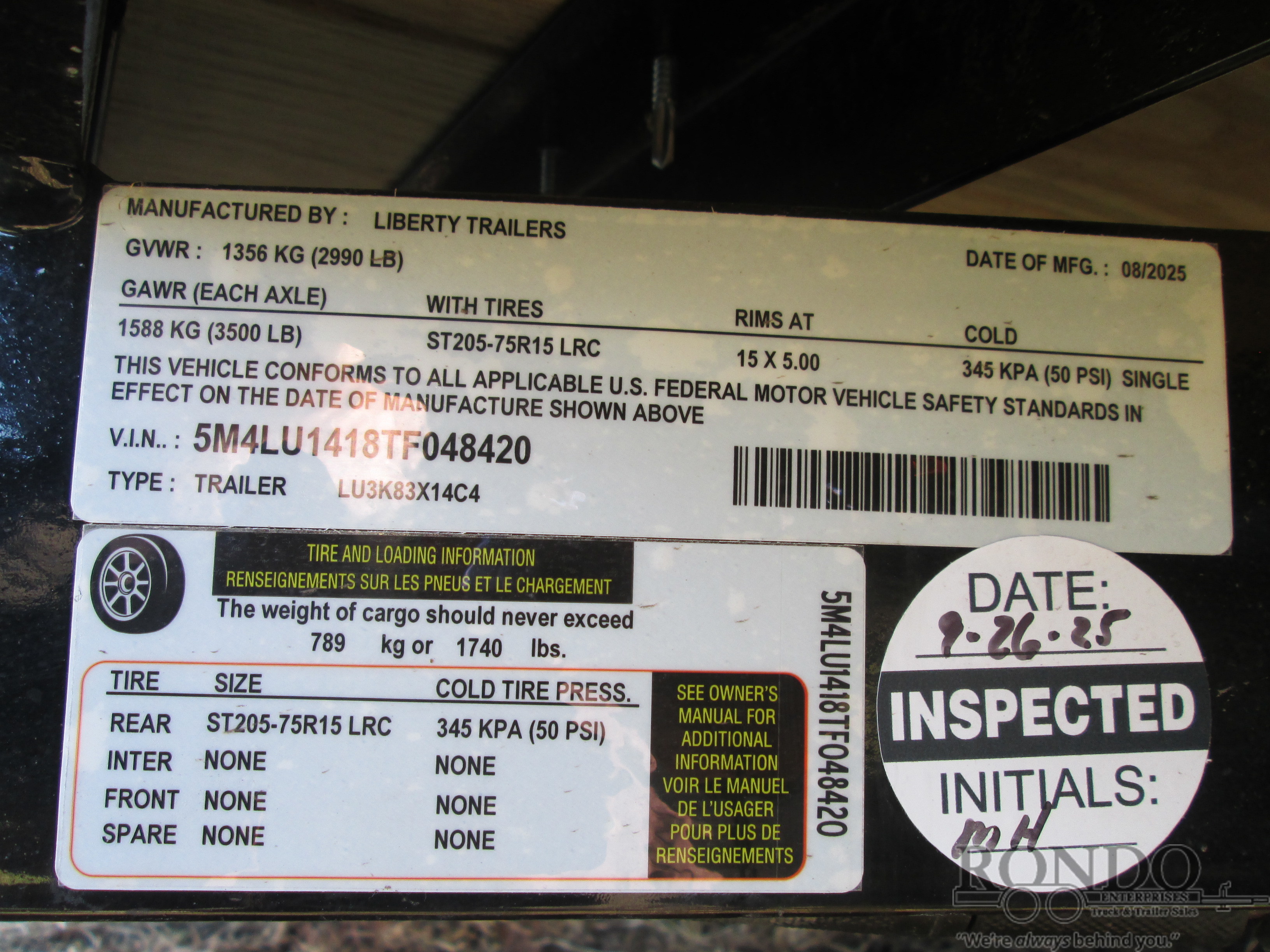 • Axle Capacity: 3500 LBS