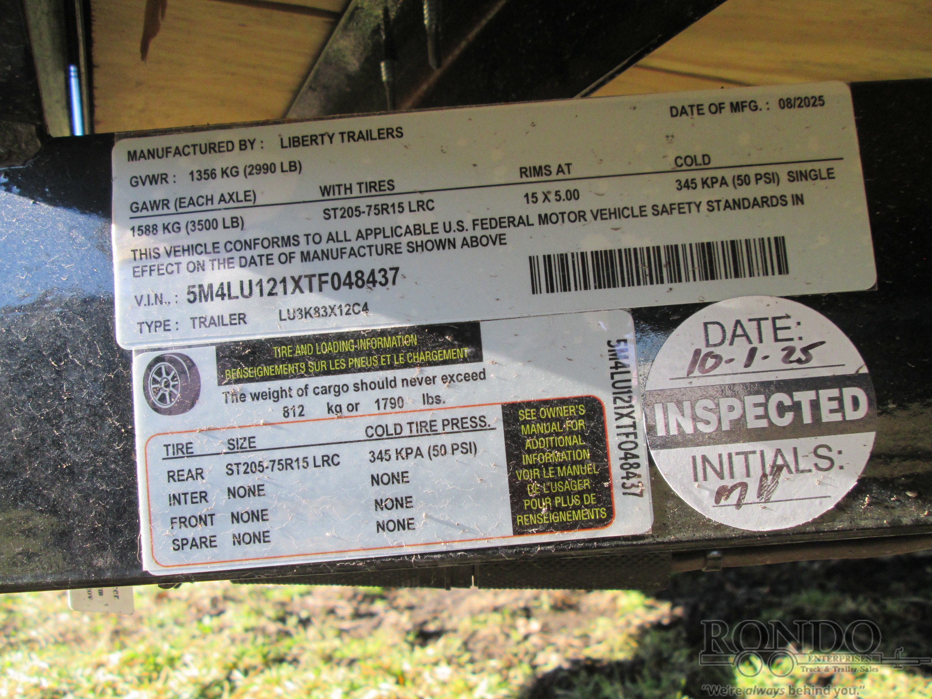 - Axle Capacity: 3500 LBS