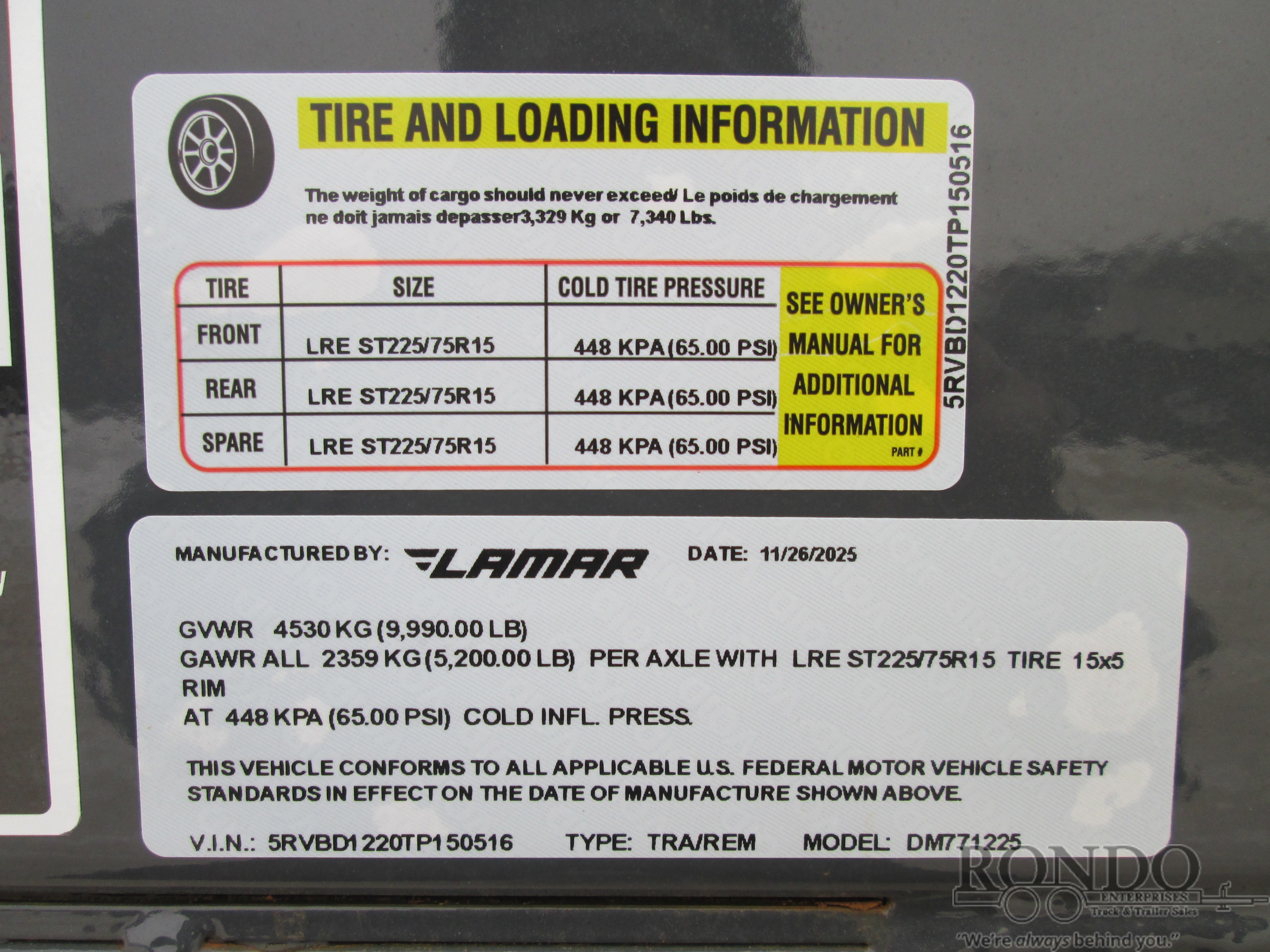 - Tire: ST225/75R15