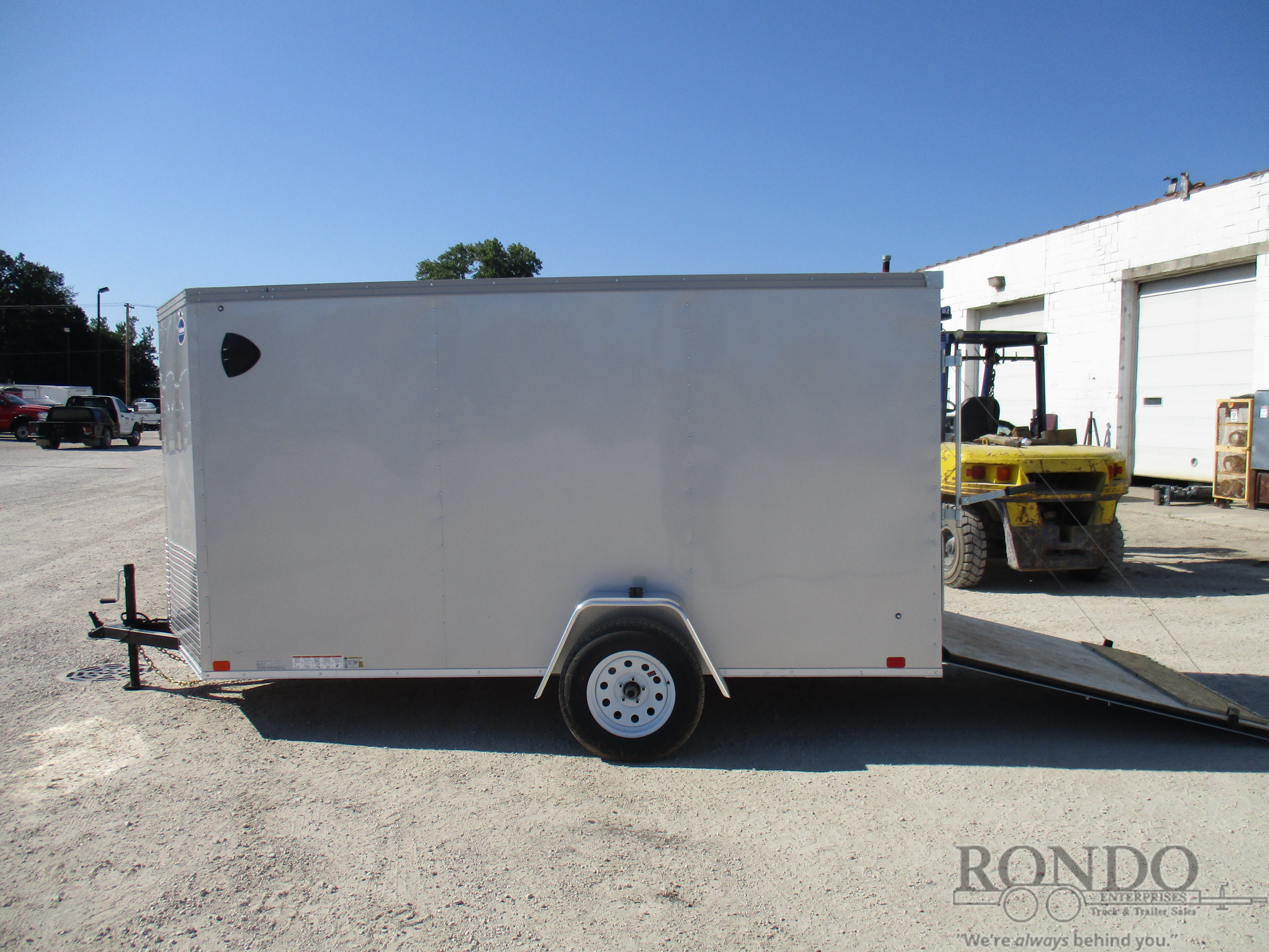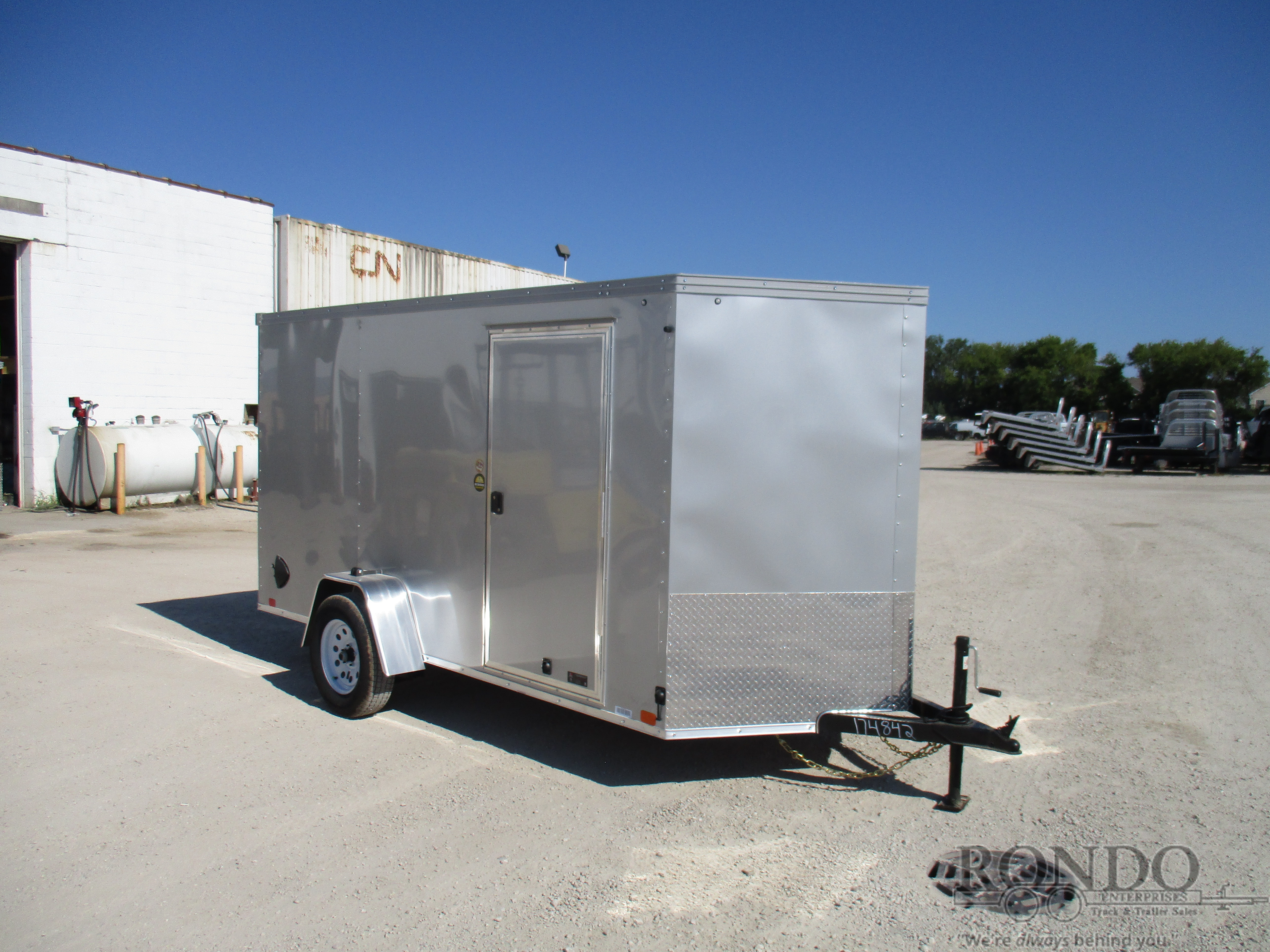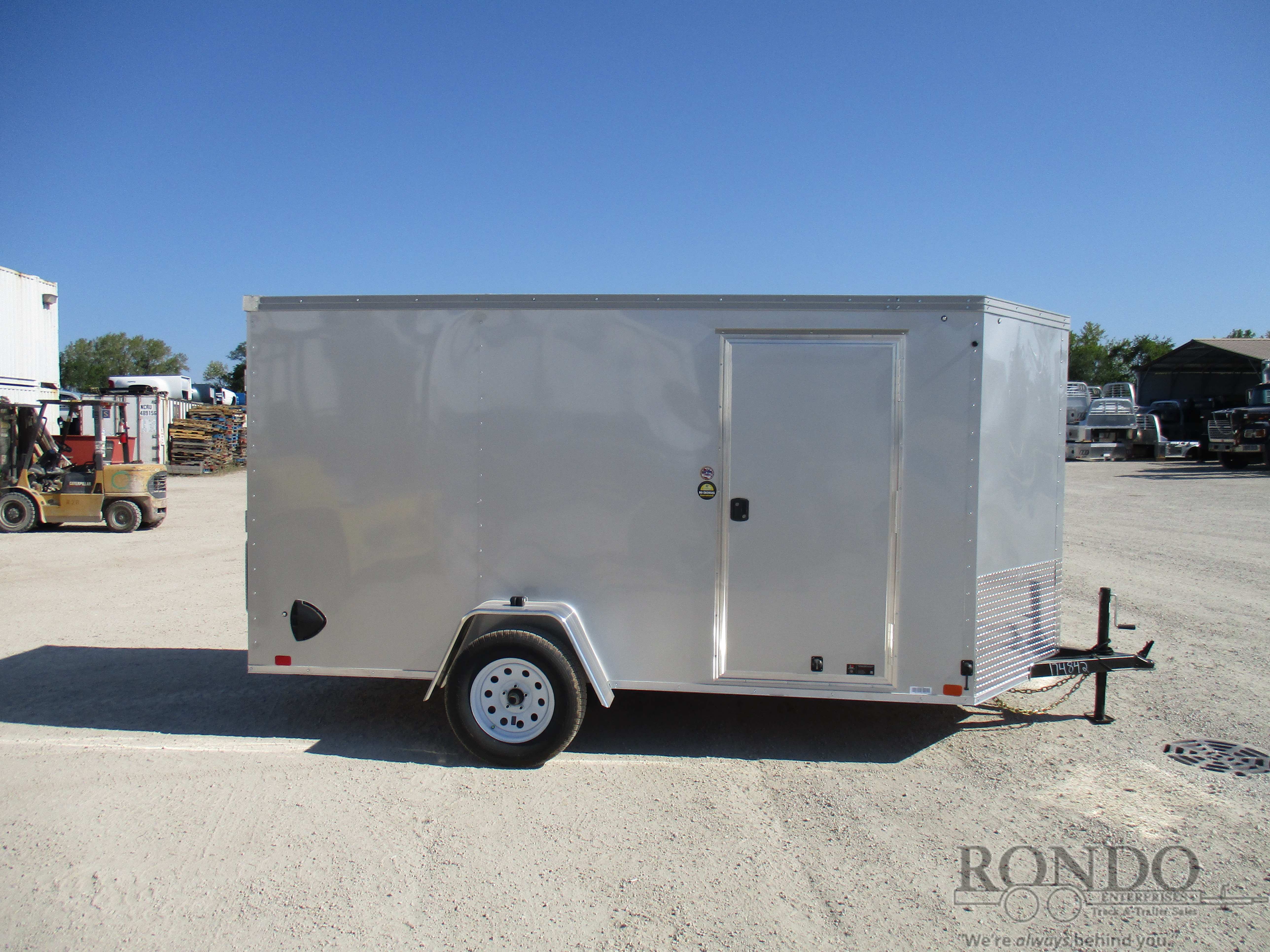 SOLD - 2k Ramp door w flap, 32 inch Side dr, 2' V-nose, Stab Jacks, Dome light & switch, Stoneguard, TSR vents, LEDs, Radial tires, No brakes, 6 Feet Interior Height. Color: Silver. Estimated empty weight 1420#. *Spare tire is NOT included. Sold separately.
