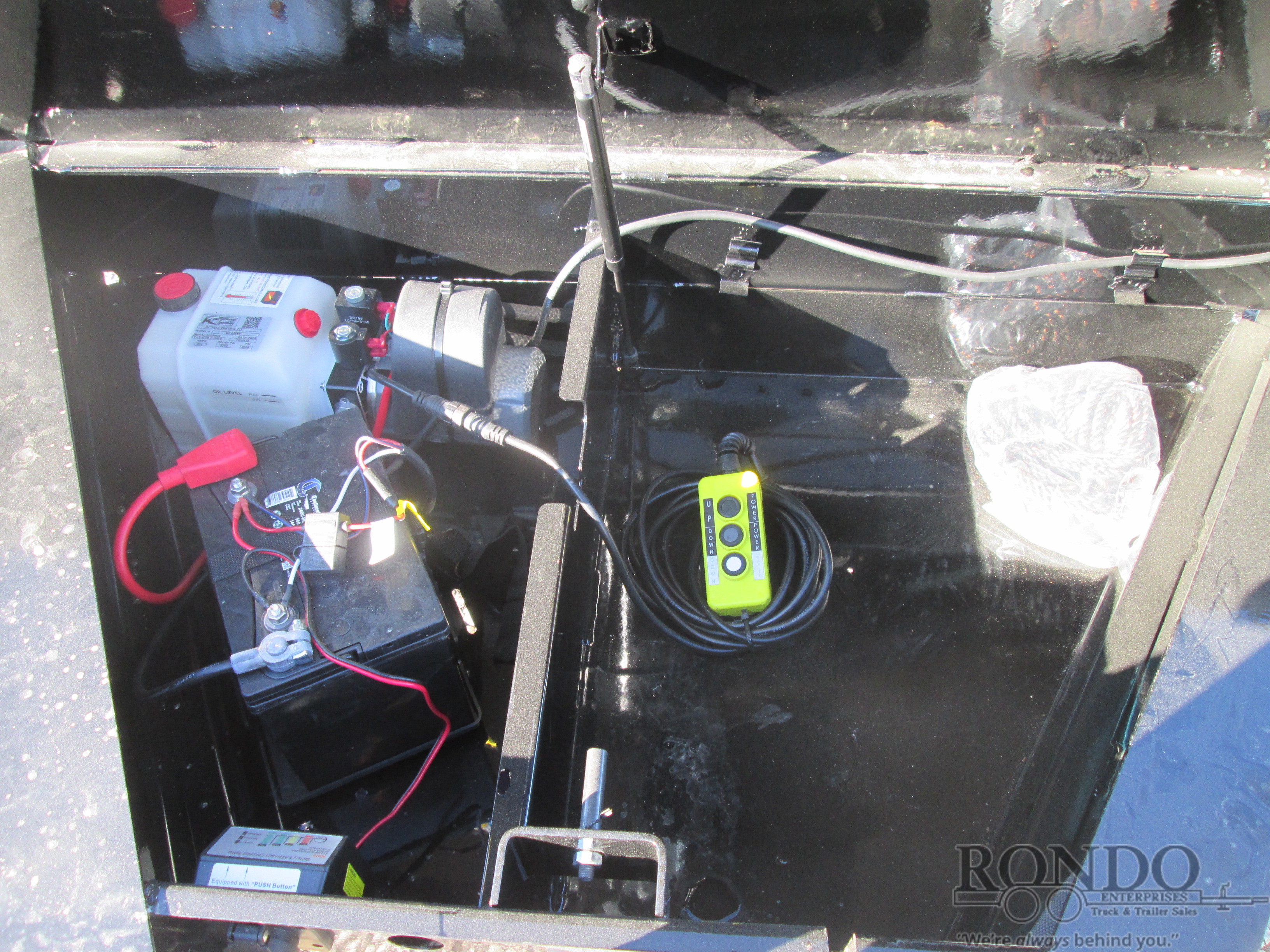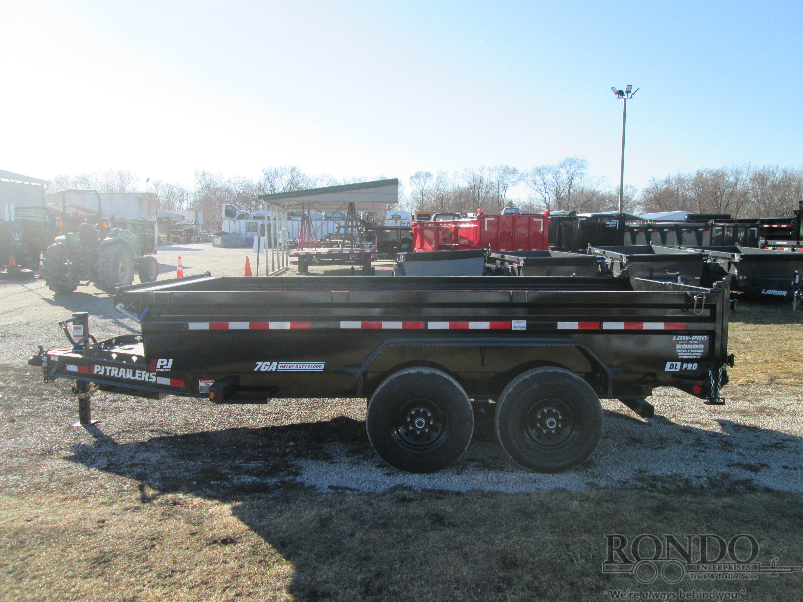 Updated DL model -2' Sides, Low Profile, Split/spreader gate, Ramps w new style built-in doors, Scissor Hoist w 3-way pump (power up/power down/gravity down), 7ga Floor, Tarp kit, Rear support stands, New massive Monster toolbox, 10k Jack, Spare mount, Adjustable Coupler or pintle ring, LEDs, 2 Lippert Straight axles with electric brakes, 7.2 Cubic yard capacity. Primer + powder coat Color: Black. Estimated shipping weight as stated by Mfg: 3970#. *Spare tire is NOT included. Sold separately.