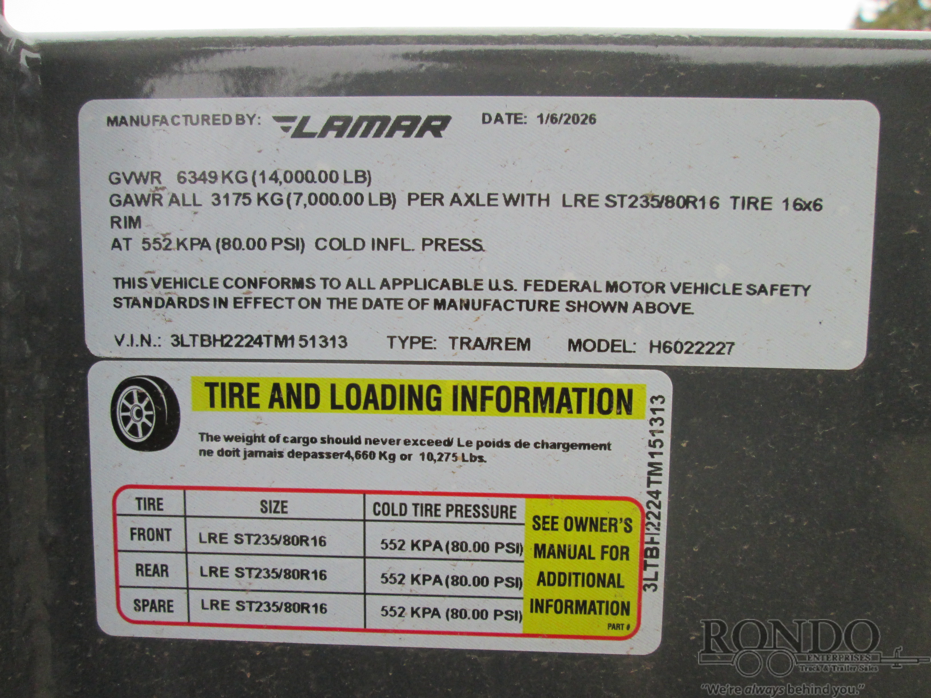 - Tire: ST235/80R16