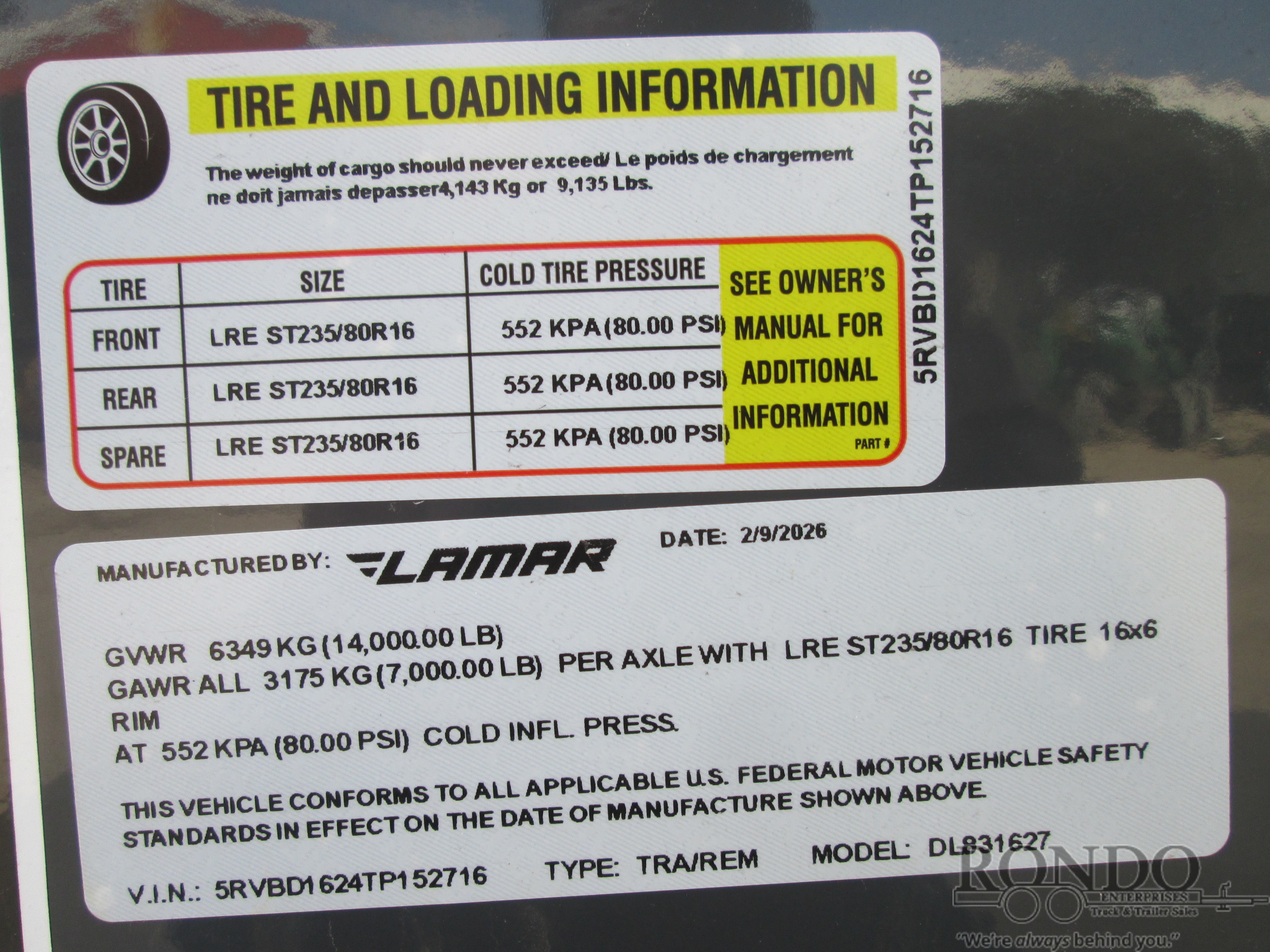 - Tire: ST235/80R16