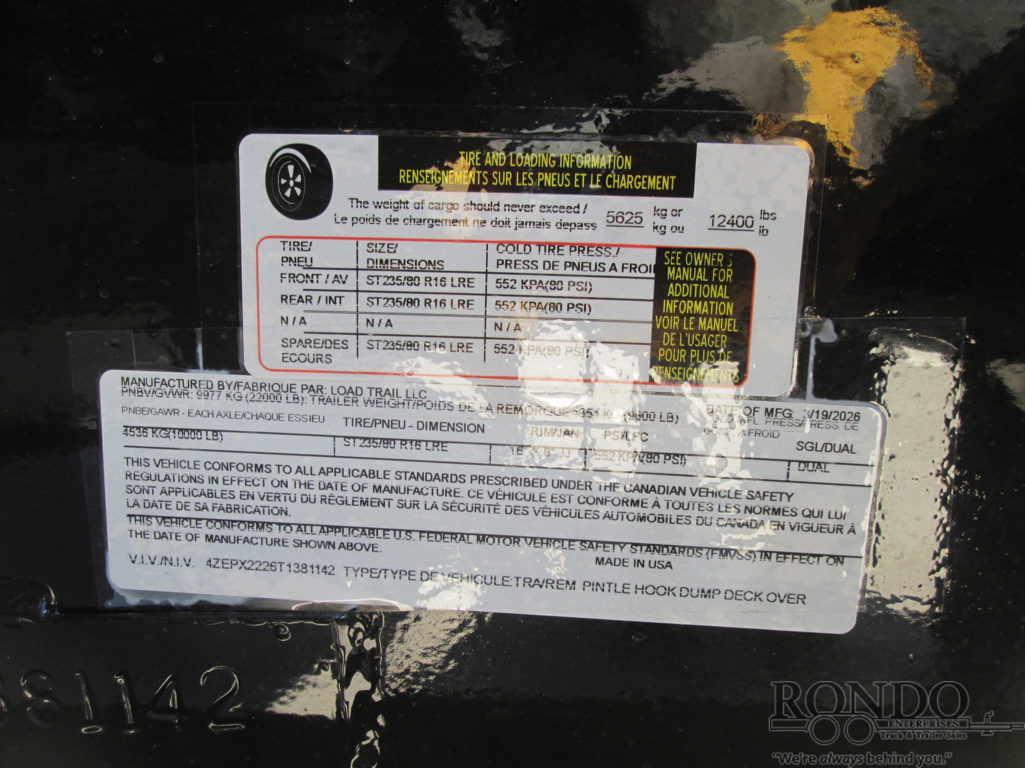 - Axle Capacity: 10000 LBS