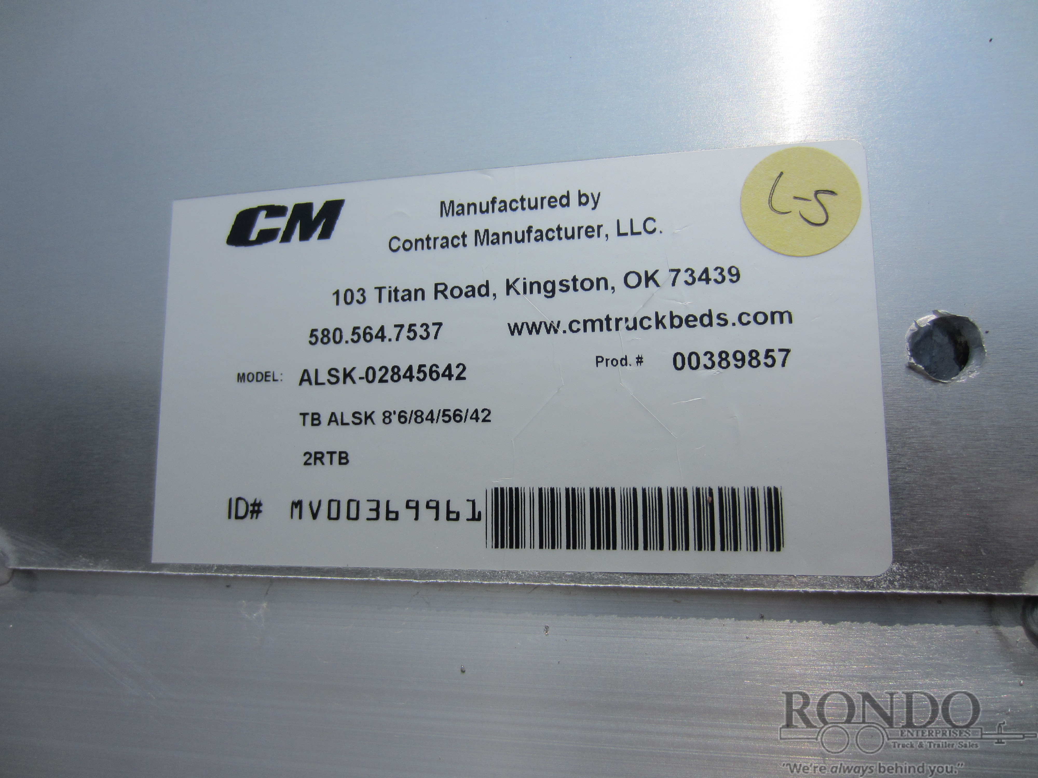 NOS CM ALSK Flatbed body only, 8.5' long x 84 inch wide, 56 inch cab to axle, 42 inch frame rail width, 45.5 inch headache rack height (overall from bottom of frame rails to top of HR), 2FTB, 2RTB, 2.5" 24k rear hitch, Aged/Old Stock (may have minor dings & scratches, blemishes, oxidation, fading, rust streaks, etc)., color: Aluminum. Mfg part # ALSK-02845642. Weighs approx 710 lbs. Serial # MV00369961.