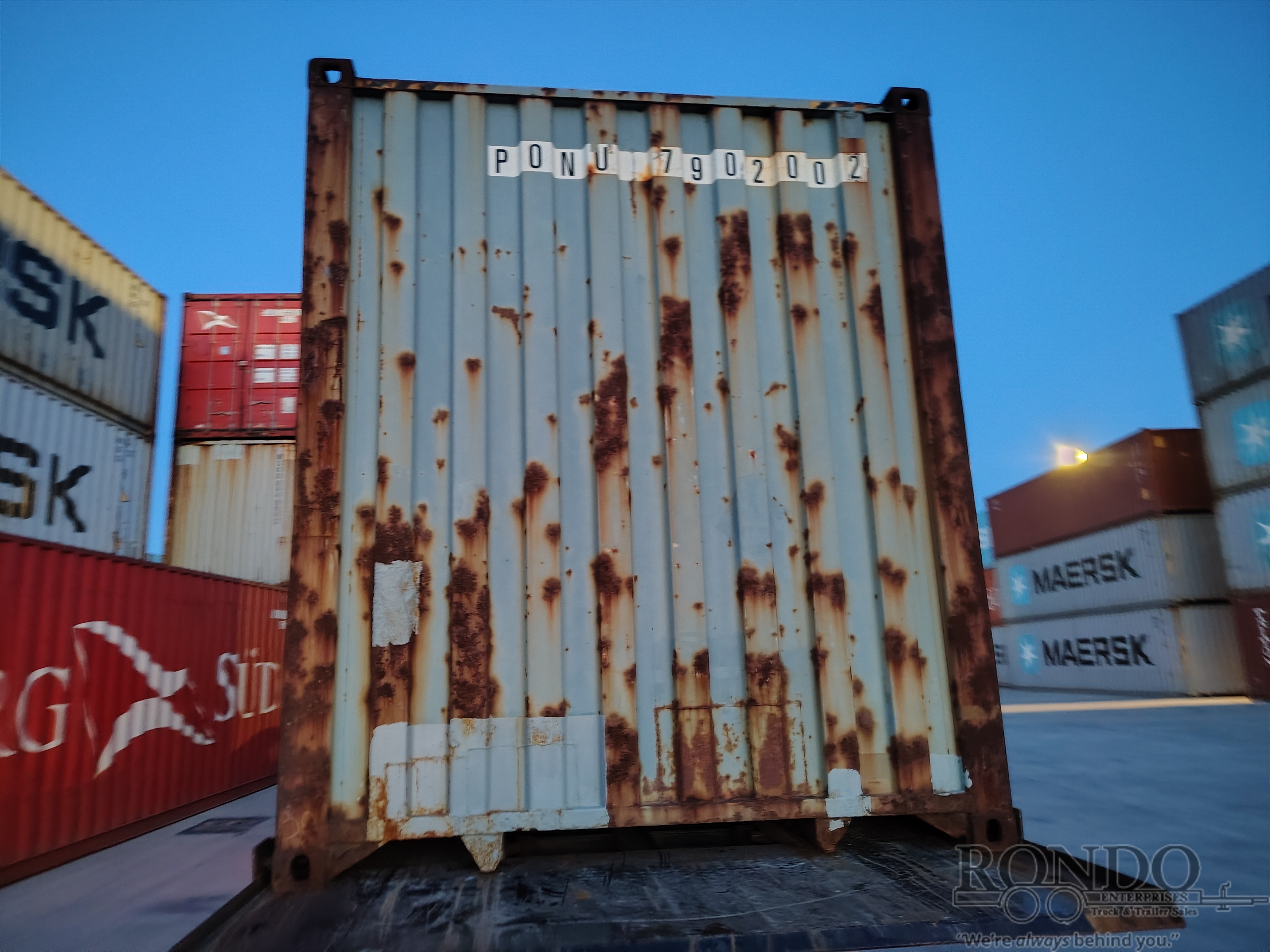 Off Site (E). Call first - this container is currently off site at a nearby storage lot. Type: High Cube. Notes: . Grade code: Wind and Water Tight. More about the Grade condition: A wind and water-tight (WWT) container is where no wind or water can penetrate through the roof, walls, or doors. These containers are suitable for local storage. They may show signs of wear (extensive markings, corrosion, scratches, and/or major rust), usually have some damage (could be repaired or non-repaired), but they are generally structurally sound. Older than 10-15 years. ---- SOLD AS IS, NO WARRANTY. All sales are final, no returns or refunds.