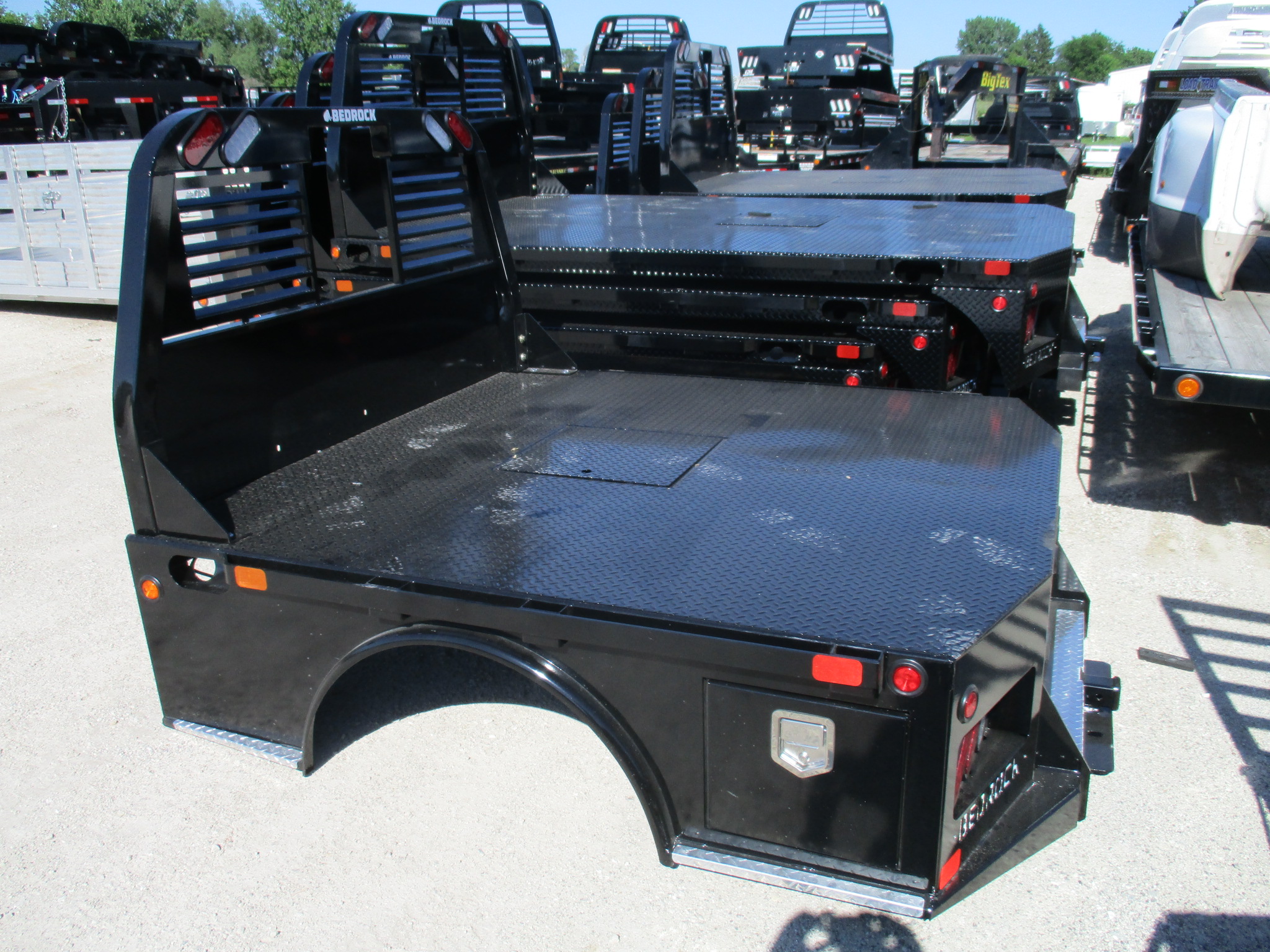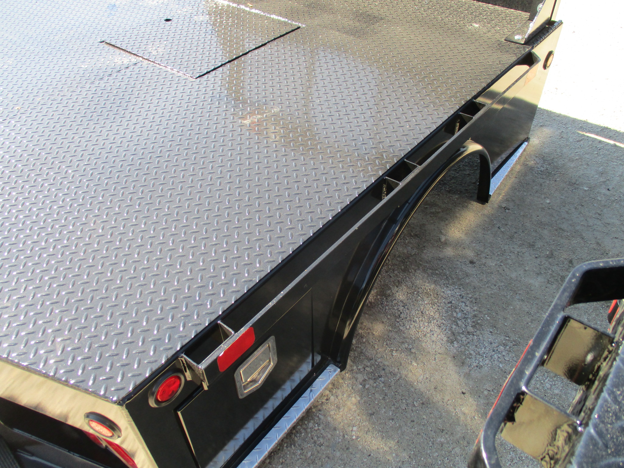NEW Bedrock Granite Flatbed body only, 7' long x 84 inch wide, 40 inch cab to axle, 38 inch rails, BEDROCK Granite Ford TKO SW 2 Box, color: Black. Mfg part # TFS084844038B277G. Weighs approx 1102 lbs. Serial # 18052206.